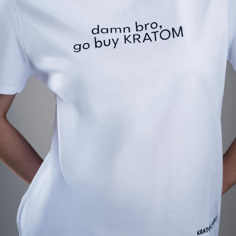 Kratom World dames T-shirt met het motief “damn bro, go buy KRATOM.”